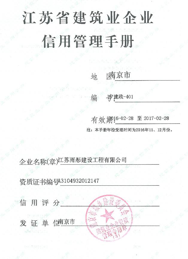 我公司领取江苏省建筑业企业信用管理手册